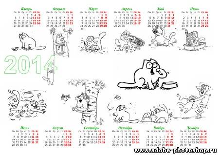 Категория: Календарные сетки | Добавил: Alexey6703 | Теги: Календарь, кот, фотошоп, настенный, 2014, psd, Саймона