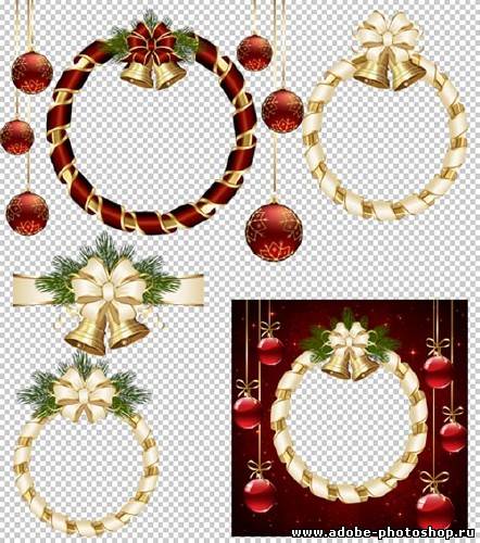 Клипарт - Новогодние рамки вырезы украшенные бантом и колокольчиками на прозрачном фоне PSD PSD 1 | слои раздельно | max 5000 x 5000 | 300 dpi | 78.3 MB
