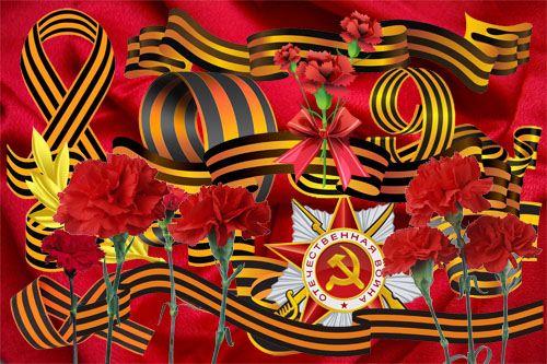 Клипарт Георгиевские ленточки и гвоздики PSD | 3500 х 2400 | 300 dpi | 43 Мб Автор:Severom
