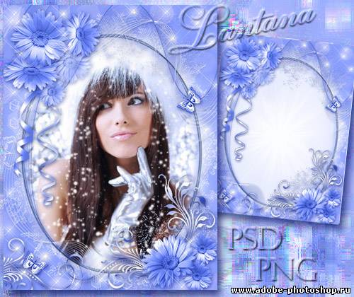 Многослойная рамка для оформления зимних фото - Голубые цветы расцветают под лунным сияньем PSD & PNG | 3543 x 4724 | 300dpi | 118 MB Author: Lantana