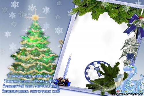 Новогодняя поздравительная рамка со змейками PSD| 300 dpi | 38 mb Автор: nataly1