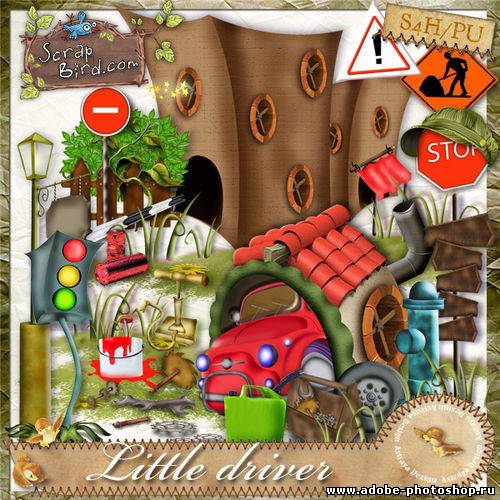 Детский нарисованный набор для скрапбукинга - Маленький автомобилист 73 png | 12 jpg | 3600xp3600px | 68,42 Mb