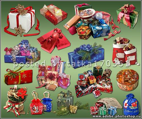 Клипарт для фотошопа с прозрачным фоном - Новогодние подарки 65 PNG | 2500x2500 | 300 dpi | 168 мб Автор: обработка tatka170361