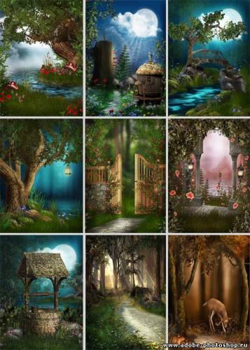 Сказочные пейзажи для фона Красивый набор фонов для фотомонтажа JPG | 750 x 925 px | 26 фонов | 18 МБ